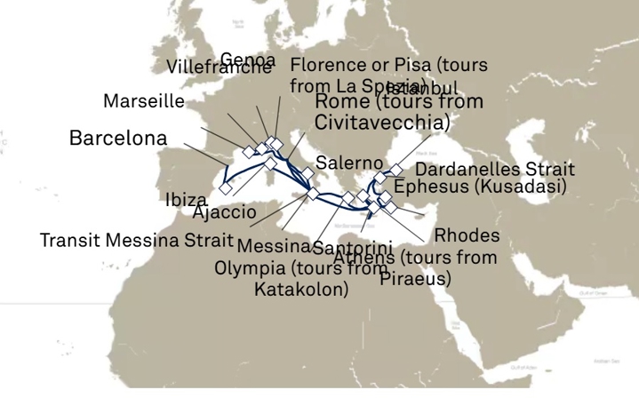 Surrender to the rhythm of the Mediterranean on a 28-night voyage of timeless beauty and rich heritage with Cunard Cruises. From the majestic skyline of Istanbul to the sun-kissed shores of the Greek Islands, this extraordinary journey weaves through the heart of southern Europe in iconic Cunard style.