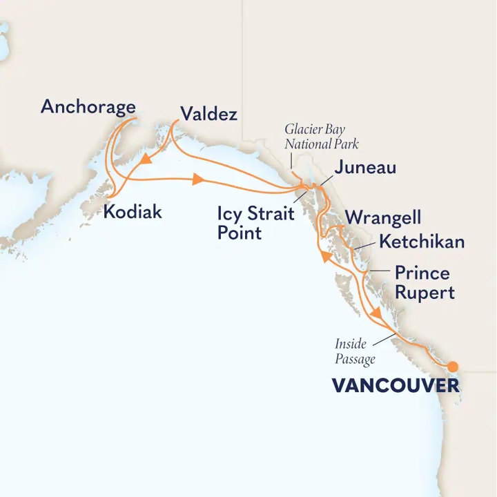 With striking mountain vistas and a thriving art and theatre scene, enjoy a two‑night hotel stay in Vancouver before joining Nieuw Amsterdam® to set sail with Holland America Line®, renowned for over 75 years of exceptional Alaska journeys.