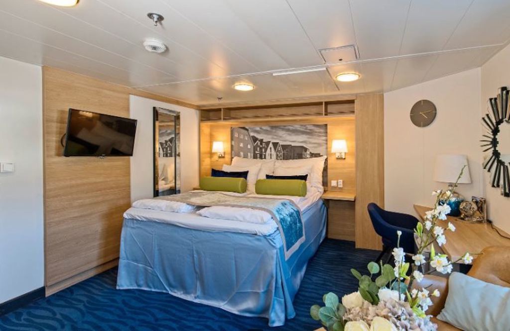 Arctic Superior cabins provide an elevated level of comfort. Situated on decks 5 and 6, these outside-facing cabins feature a double bed and a window as standard. Enjoy comforts that make your stay feel more like home, like a kettle with tea and coffee. Please note: All cabins on deck 5 have access to a promenade deck outside.