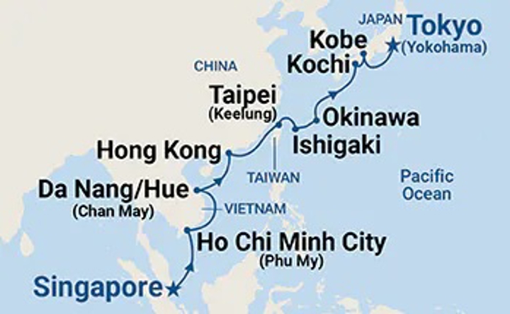 Set sail from Singapore onboard Diamond Princess®. Discover bustling Vietnam, rich in history and colorful traditions, before experiencing the energy of Hong Kong, the warmth of Taiwan, and Japan’s cultural treasures in Ishigaki, Okinawa, Kochi, and Kobe, concluding in Tokyo (Yokohama).