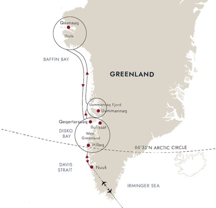 A remarkable Arctic voyage unfolds from Copenhagen, venturing into Greenland’s remote west coast and dramatic polar landscapes. Call at colourful Nuuk, witness towering icebergs in Disko Bay, and journey deep into the Thule region, where vast wilderness and ancient Inuit culture define the experience. From shimmering fjords to ice-filled seas, this expedition reveals Greenland at its most raw and awe-inspiring.