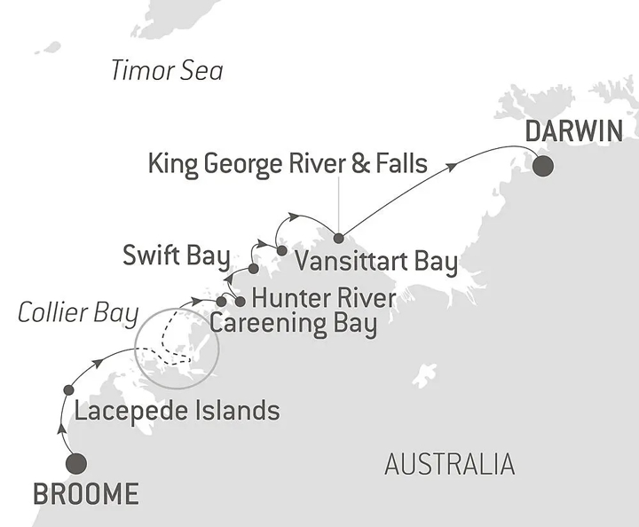 • 7 Sep 26 | Sail Broome to Darwin. Price based on 07 Sep 26 sailing departure. Choose from a range of dates in 2026 including reverse itinerary options.