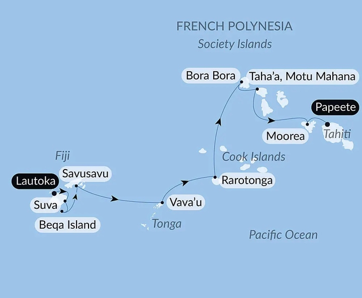 Journey across the heart of the South Pacific on a wonderful voyage from Lautoka, Fiji to Papeete, Tahiti aboard Le Jacques-Cartier by Ponant. Discover idyllic islands, turquoise lagoons and rich Polynesian cultures as you travel between some of the region’s most remote and beautiful destinations. Enjoy expert-led insights, Zodiac landings and immersive shore experiences that reveal the true spirit of the Pacific. Onboard, travel in refined French style with all-inclusive dining, elegant design and personalised service throughout.