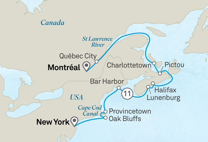 Cruising mighty waterways to the Atlantic Ocean, this is an exploration of two great nations steeped in history. From French-speaking Canada to the Big Apple, this Signature Yacht Cruise encompasses diverse cultures and scenery, with stops in historic fortified cities, charming coastal enclaves and windswept islands.