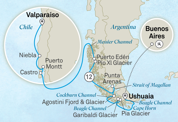 The waterways of Chilean Patagonia unfold with breathtaking vistas at every turn, from dynamic glaciers to soaring volcanic peaks. This Expedition Voyage begins in the lively city of Valparaiso and takes in the best of Chile’s diverse landscape, following legendary passages, along with rich cultural heritage in remote settlements and spectacular wildlife along the way.