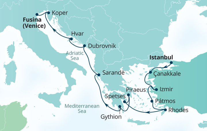 Set sail from magnificent Istanbul with Seabourn and discover stunning shores, ancient history and delicious cuisine - from the expansive ruins of Troy and the glorious Neoclassical architecture of Athens to the serene beauty of tiny Patmos, and the timeless charms of Dubrovnik.