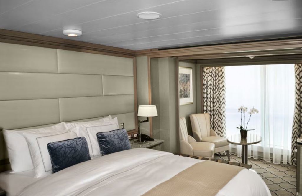 Located on the upper deck and offering spectacular sunset views, the Superior Veranda Suite has all the comforts and luxury that you can expect aboard. A comfortable living space, attention to detail, and a generous expanse of amenities, this stunning suite makes for a cozy home while at sea. But perhaps this suite’s finest asset lies just outside, as floor-to-ceiling glass doors open onto a private veranda, making every sunset feel as if it is yours alone.