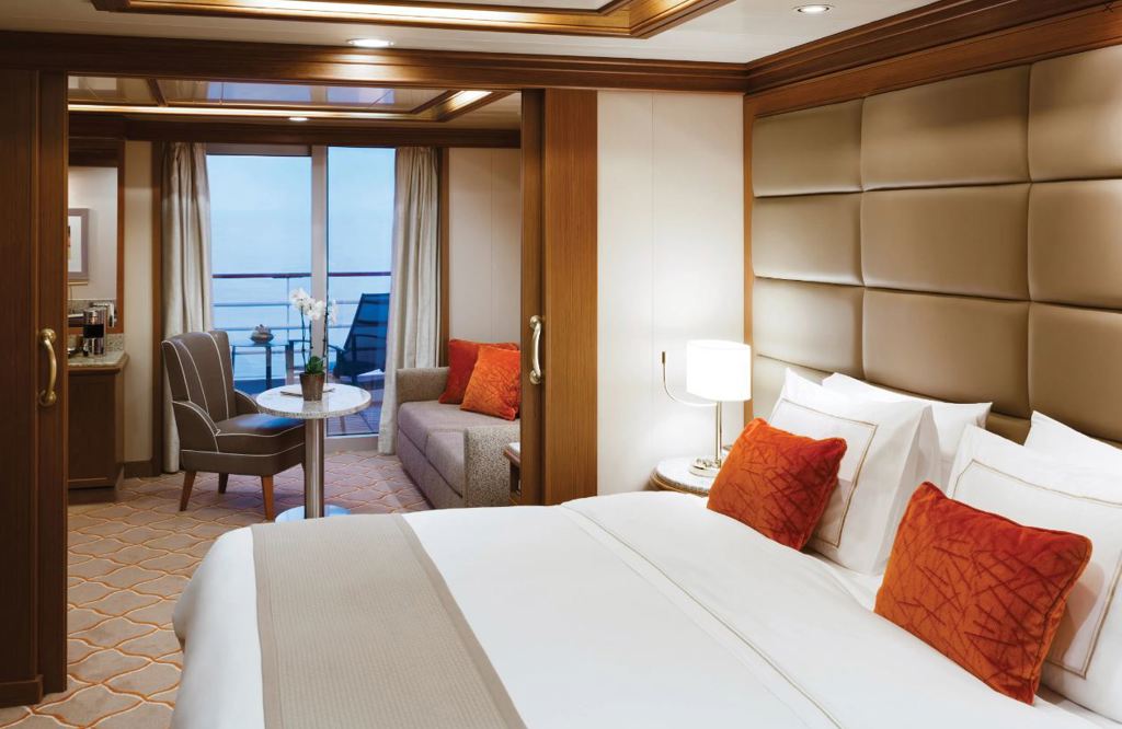 The Silver Suite is one of the foundations of ultra-luxury cruising. Take traveling to a whole new level with the Silver Suite’s unparalleled levels of service, comfort, and of course, style! Available in either a one-bedroom, a two-bedroom, or wheelchair accessible configuration, Silver Suites are fully equipped for the discerning traveler. Whether enjoying the spectacular views from the veranda or relaxing in the large sitting room, Silver Suites offer a comfortable haven on the high seas.