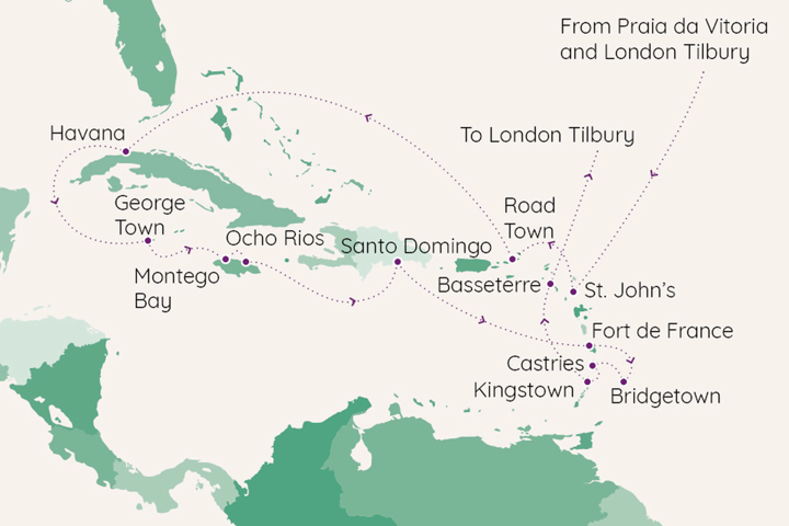 Step aboard Ambassador Cruise Line’s Ambience for an unforgettable Caribbean escape, where vibrant cultures and breathtaking landscapes await. From the iconic sights of Havana to the lush beauty of Ocho Rios, the lively energy of Montego Bay, and the rich history of Santo Domingo, each destination offers its own unique allure. This voyage invites you to immerse yourself in the soul of the Caribbean, making memories that will last a lifetime.
