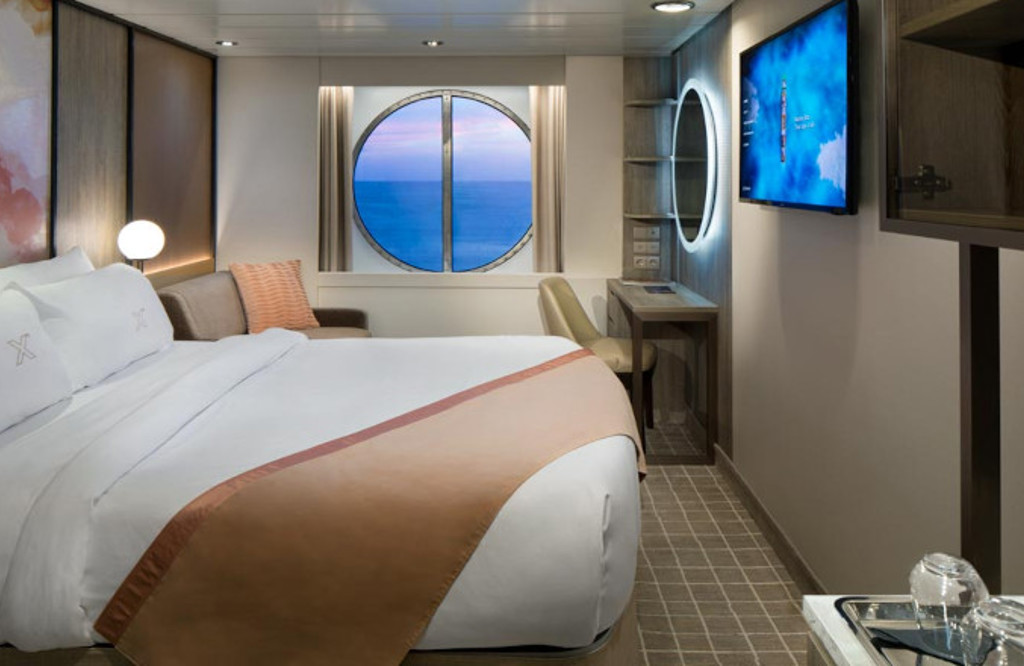 Ocean View staterooms, the ideal place to unwind at sea. These perfectly indulgent spaces come furnished with Celebrity’s eXhale(R) bedding featuring the luxury king sized* mattress and everything else a modern traveler needs.