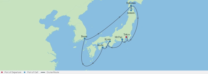 From the bustling streets of Tokyo to the serene beauty of Mt. Fuji, this journey takes you through Japan’s cultural highlights and the vibrant city of Busan in South Korea. Experience the historic charm of Kyoto and Osaka, the scenic coastlines of Hakodate and Aomori, and enjoy relaxing days at sea, blending city exploration with tranquil moments.