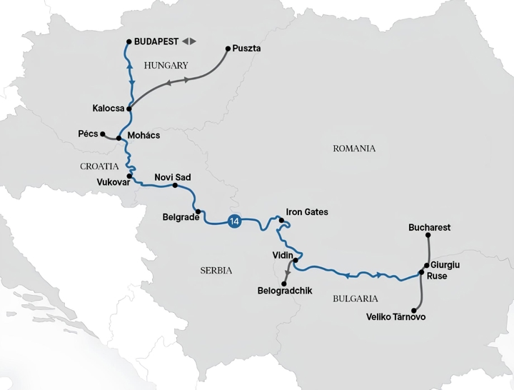 Discover Eastern Europe on a 14‑night voyage—sail through the Iron Gates, tour Golubac Fortress, and experience the history of Belgrade and Bucharest.