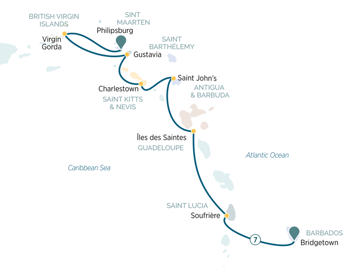 Embark on this 7-night Caribbean cruise starting from Marigot, aboard an Emerald Cruises luxury yacht. Explore the low-lying island of Anguilla, famed for its enticing white-sand beaches and coral reefs. Discover the brightly coloured houses and distinctive architecture in Gustavia. Admire the UNESCO World Heritage site Nelson’s Dockyard in Falmouth Harbour and swim in the tranquil waters of Iles des Saintes. Your Caribbean voyage concludes in Barbados, known for its beaches and vibrant culture.