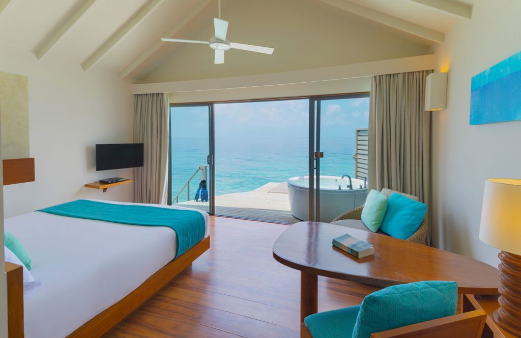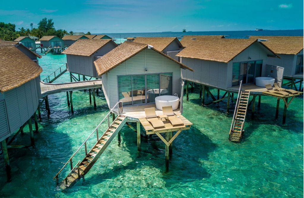 A stroll on the wooden jetties leads to the intimate enclave of Overwater Villa with Swirl Pool with direct access to the lagoon reef. Each 42-square-metre retreat accommodates two adults and features a king-size bed and a bathroom with shower. An outdoor spa bathtub invites guests to unwind while taking in unforgettable ocean views.