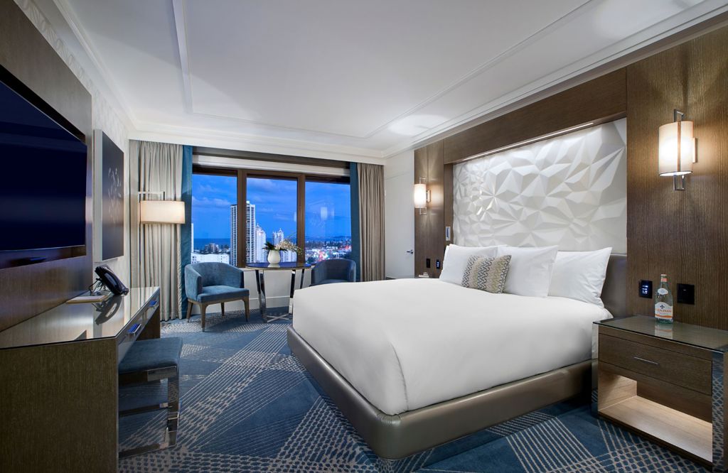 The Star Grand at The Star Gold Coast is a luxurious 5-star resort nestled on Broadbeach Island in Queensland, Australia. It offers a vibrant blend of relaxation and entertainment, featuring 592 elegantly appointed rooms and suites with sweeping views of the coastline and hinterland. Located just a short stroll from Kurrawa Beach and Pacific Fair Shopping Centre, The Star Grand is a prime destination for both leisure and business travelers. The hotel’s rooms are equipped with state-of-the-art technology, plush bedding, and modern bathrooms. Options range from Superior Deluxe Rooms to lavish Ocean Terrace Suites with private bars and sun-drenched terraces.