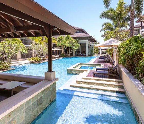 Nestled in a lush tropical setting, just minutes from the iconic Four Mile Beach and the gateway to the Great Barrier Reef and Daintree Rainforest. Unwind in the stunning lagoon-style pool, sip cocktails at the swim-up bar, or relax in the lush gardens. Modern, comfortable, and designed for relaxation, with options perfect for couples, families, or solo travelers.