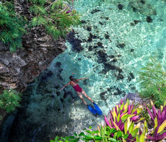 A quarter of the island is clothed in pristine rainforest and almost the entire island is surrounded by 20 to 30-metre cliffs, and dramatic beautiful chasms and coves provide perfect swimming spots.