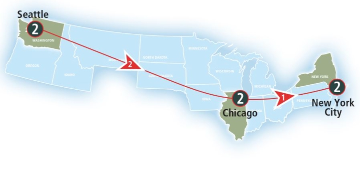 - One-way Amtrak® from Seattle to Chicago on the Empire Builder®; Chicago to New York City on the Lake Shore Limited® in Coach accommodations
