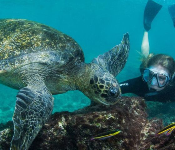 Join the experience that’s made Ningaloo Reef famous worldwide – swimming with magnificent whale sharks and humpback whales. Enjoy the Full Day Outer Reef Snorkelling Tour - This adventure offers the opportunity to see the beauty of the Muiron Islands or outer reaches of the Ningaloo Reef, depending on the prevailing weather conditions and areas showcasing optimal visibility. Surrounded by an abundance of coral gardens, rocky ledges and intriguing dive sites, the Muiron Islands are located about 10nm north east of Exmouth. Keep your eyes open during the 90 minute trip across to the Islands for ospreys, shearwaters, turtles, manta rays, dolphins, dugongs, and during their migration, humpback whales.